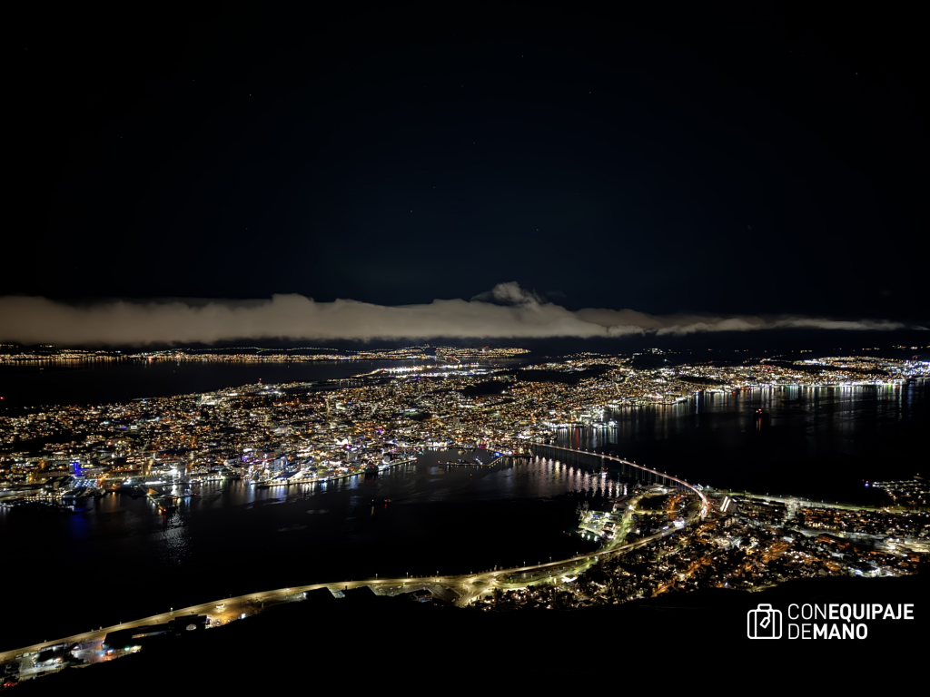 - El teleférico Fjellheisen, que sube al monte Storsteinen y ofrece las mejores vistas panorámicas sobre la ciudad, la isla y las montañas nevadas. No es barato pero es el mejor sitio para intentar ver las auroras boreales en la ciudad, y además las vistas de toda la isla de Tromsøya y de los fiordos merece la pena. Cuesta unos 45€ ida y vuelta, y puede comprarse en la propia estación inferior o si quieres asegurarte plaza y no tener que esperar, puedes comprarlo online en la web oficial o a través de GetYourGuide. También tienes la opción de subir y/o bajar a pie, hay un sendero por el que se tarda una hora aproximadamente, pero en invierno, ni hay nieve o hielo, tienes que tener el equipo adecuado. El teleférico abre de 9 a 00:00 (la última cabina baja a medianoche), y en la cima de la montaña hay una cafetería y baños.